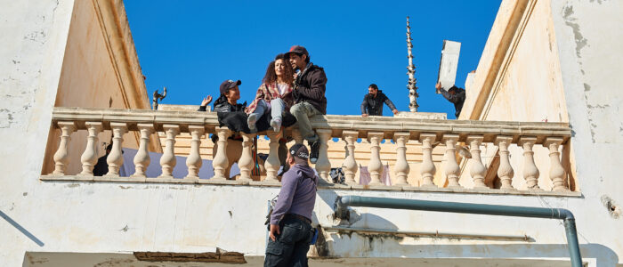 On the morning of November 2, I enter the arena. I’m as ready as I’ve ever been. My gladiatorial, reticent concentration is at an all-time high. I stare straight ahead, my eyes riveted on the set, the Villa Vito, a colonial building on the seafront that’s been converted from top to bottom for the needs of the film. We’re in Le Kram, a northern suburb of Tunis, and I’m just coming out of 7 weeks of intensive rehearsals with my actors, who have been looked after by a physical trainer, my friend Kadhem NADIM, a Krav Maga instructor and top boxer. I exchange a few words with Mohamed, my first assistant. The cinematographer, grips, electricians and set designers are all hard at work.
